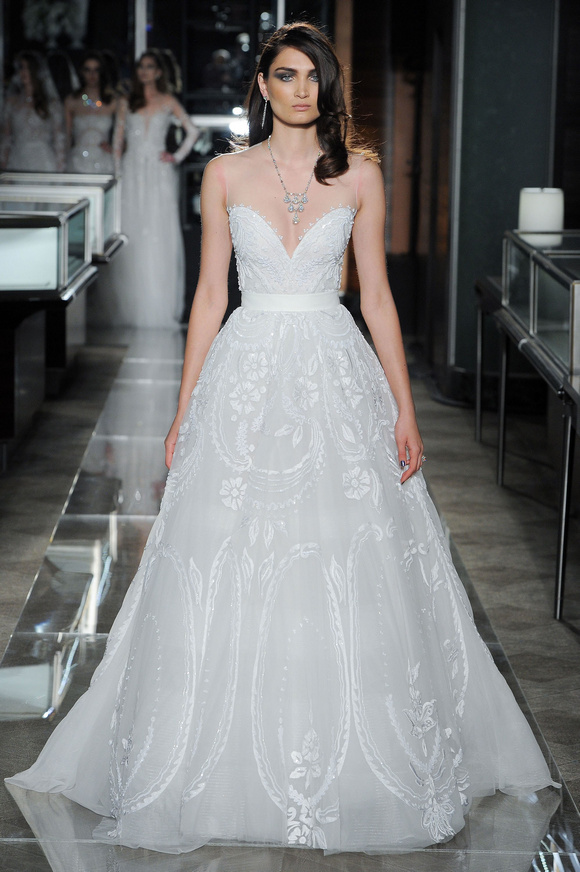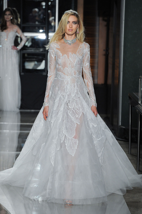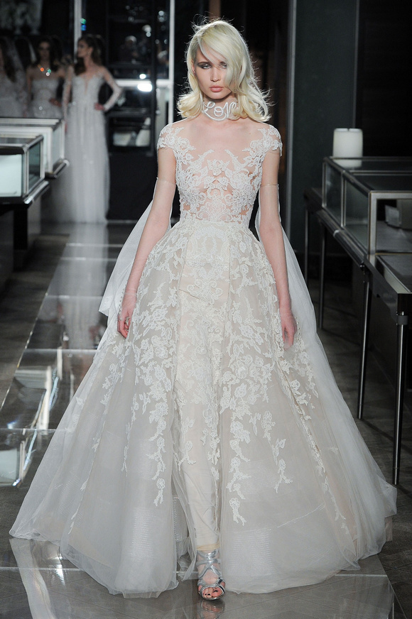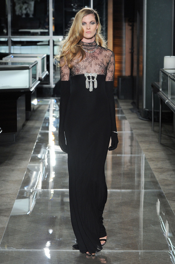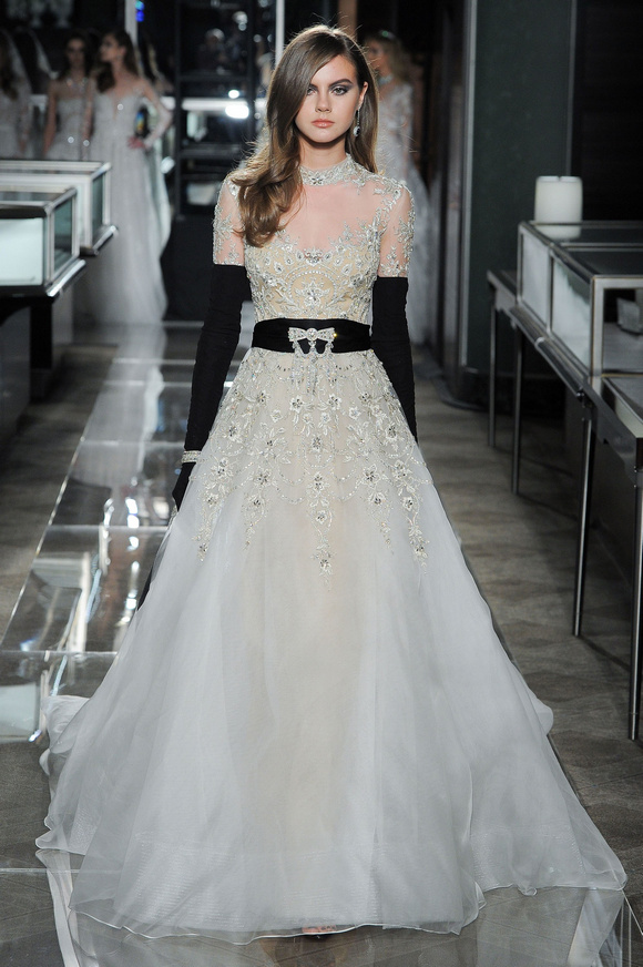 在Reem Acra與Tiffany合作20周年之際,Reem Acra 2018春季婚紗時裝秀也拉開了帷幕。而Tiffany是一切婚禮相關的標配。在時裝秀開始的時候,帶給人們能不是一般的沖擊,顛覆了人們對婚紗傳統(tǒng)的認識,是一系列黑色婚紗的出場。Acra解釋道:ldquo;我希望婚紗可以展現(xiàn)另外一種風格,那就是性感、時尚、奢華和富有魅力的。